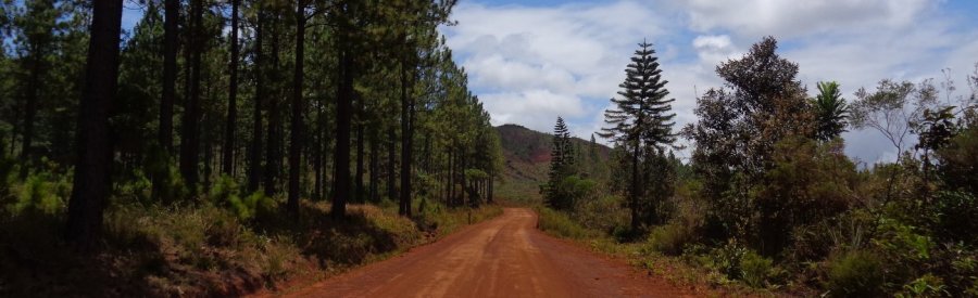 Il est 9h le lendemain lorsqu’on prend la route du Grand Sud, direction Mont Dore et le parc provincial de la Rivière Bleue. Beaucoup de trafic en ville avant de rejoindre la route de Yaté, le paysage est montagneux, la terre est rouge, c’est très sauvage ! Arrêt photos au col de Mouirange à 260m ! puis la rivière des pirogues, le col des 2 Tétons : paysage Waouh !!!