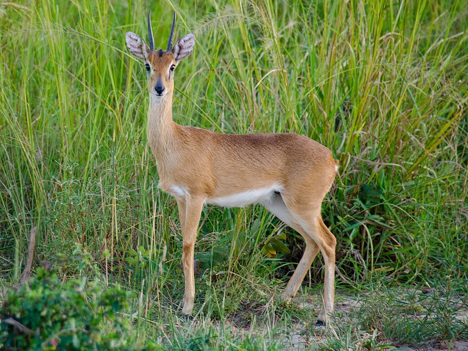De nombreuses autres espèces sont susceptibles d’être rencontrées en safari : le topi, l’oribi, le céphalophe commun, le guib harnaché, le buffle, la girafe de Rothschild, le cobe de fassa, le sitatunga, l’élan ou encore l’oréotrague sur les rochers des collines (sans doute le meilleur endroit en Ouganda pour les voir). Dans l’eau ou sur les abords des lacs, hippopotames et crocodiles sont souvent observés.